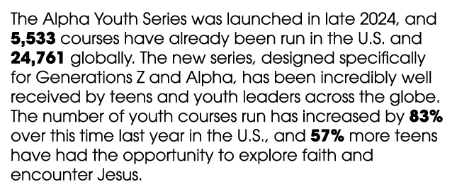 Alpha is an 11 week course on evangelism and discipleship. It’s a safe place to ask questions about faith, life questions, and purpose.